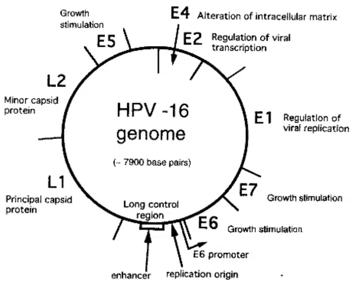 Şekil-1: HPV’nin genel şematik yapısı (burada tip-16 verilmiştir.)