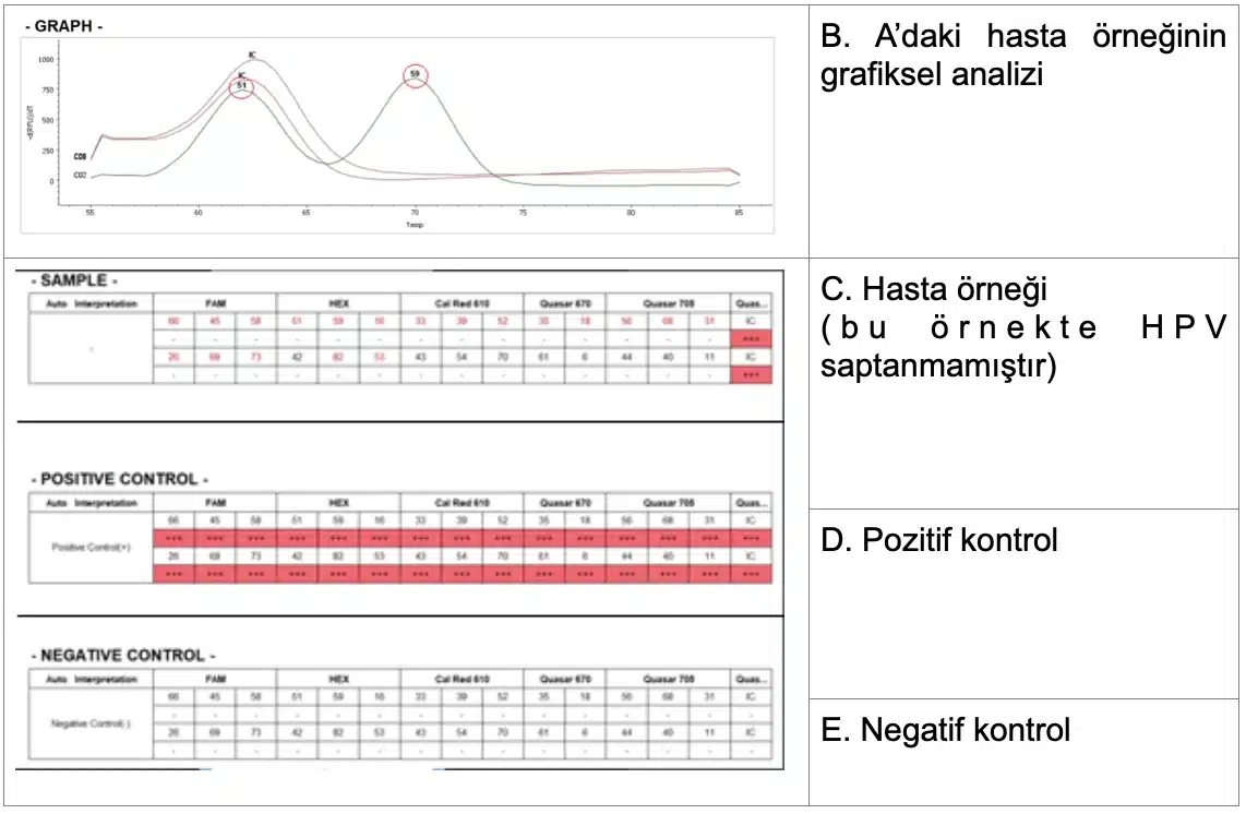 1. HPV DNA Testleri: Bu yöntemde, alınan örnekte virüsün olup olmadığını gösterilmesi yanında, belirli tiplerin saptanması da mümkün olabilmektedir (Şekil-2).